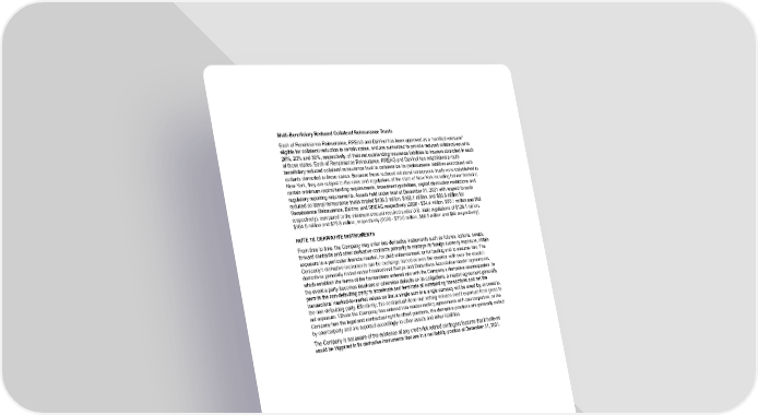Multi-Beneficiary Reduced Collateral Reinsurance Trusts Each of Renaissance Reinsurance, RREAG and DaVinci has been approved as a “certified reinsurer” eligible for collateral reduction in certain states, and are authorized to provide reduced collateral equal to 20%, 20% and 50%, respectively, of their net outstanding insurance liabilities to insurers domiciled in each of those states. Each of Renaissance Reinsurance, RREAG and DaVinci has established a multi- beneficiary reduced collateral reinsurance trust to collateralize its (re)insurance liabilities associated with cedants domiciled in those states. Because these reduced collateral reinsurance trusts were established in New York, they are subject to the rules and regulations of the state of New York including but not limited to certain minimum capital funding requirements, investment guidelines, capital distribution restrictions and regulatory reporting requirements. Assets held under trust at December 31, 2021 with respect to such reduced collateral reinsurance trusts totaled $136.3 million, $168.1 million, and $86.6 million for Renaissance Reinsurance, DaVinci and RREAG respectively (2020 - $74.4 million, $90.1 million and $Nil respectively), compared to the minimum amount required under U.S. state regulations of $128.1 million, $164.5 million and $75.8 million, respectively (2020 - $70.0 million, $86.5 million and $Nil respectively). NOTE 19. DERIVATIVE INSTRUMENTS From time to time, the Company may enter into derivative instruments such as futures, options, swaps, forward contracts and other derivative contracts primarily to manage its foreign currency exposure, obtain exposure to a particular financial market, for yield enhancement, or for trading and to assume risk. The Company’s derivative instruments can be exchange traded or over-the-counter, with over-the-counter derivatives generally traded under International Swaps and Derivatives Association master agreements, which establish the terms of the transactions entered into with the Company’s derivative counterparties. In the event a party becomes insolvent or otherwise defaults on its obligations, a master agreement generally permits the non-defaulting party to accelerate and terminate all outstanding transactions and net the transactions’ marked-to-market values so that a single sum in a single currency will be owed by, or owed to, the non-defaulting party. Effectively, this contractual close-out netting reduces credit exposure from gross to net exposure. Where the Company has entered into master netting agreements with counterparties, or the Company has the legal and contractual right to offset positions, the derivative positions are generally netted by counterparty and are reported accordingly in other assets and other liabilities. The Company is not aware of the existence of any credit-risk related contingent features that it believes would be triggered in its derivative instruments that are in a net liability position at December 31, 2021. F-84