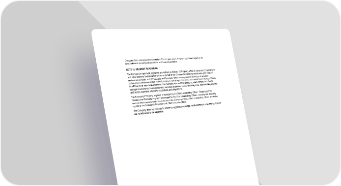 Company does not expect the resolution of these open years to have a significant impact on its consolidated statements of operations and financial condition. NOTE 16. SEGMENT REPORTING The Company’s reportable segments are defined as follows: (1) Property, which is comprised of catastrophe and other property (re)insurance written on behalf of the Company’s operating subsidiaries, joint ventures and managed funds, and (2) Casualty and Specialty, which is comprised of casualty and specialty (re)insurance written on behalf of the Company’s operating subsidiaries, joint ventures and managed funds. In addition to its reportable segments, the Company has an Other category, which primarily includes its strategic investments, investments unit, corporate expenses, capital servicing costs, noncontrolling interests and certain expenses related to acquisitions and dispositions . The Company’s Property segment is managed by the Chief Underwriting Officer - Property and the Casualty and Specialty segment is managed by the Chief Underwriting Officer - Casualty and Specialty, each of whom operate under the direction of the Company’s Group Chief Underwriting Officer, who in turn reports to the Company’s President and Chief Executive Officer. The Company does not manage its assets by segment; accordingly, net investment income and total assets are not allocated to the segments. F-73