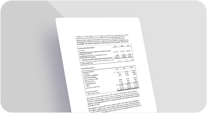 In addition to the $128.5 million of fee income earned through our third-party capital management activities described above, we earned $73.4 million of additional fees on other underwriting-related activities, primarily related to expense overrides paid to us by our reinsurers. These additional fees on other underwriting-related activities are recorded as a reduction to operating expenses or acquisition expenses, as applicable. The total fees recorded through underwriting income (loss) are detailed in the table below. Twelve months ended December 31 2021 2020 2019 (in thousands) Underwriting income (loss) - fee income on third-party capital management activities $ 67,287 $ 87,764 $ 60,046 Underwriting income (loss) - additional fees on other underwriting-related activities 73,418 59,080 47,828 Total fees recorded through underwriting income (loss) 140,705 146,844 107,874 Impact of Total fees recorded through underwriting income (loss) on the combined ratio 2.7 % 3.7 % 3.2 % Net Investment Income Year ended December 31, 2021 2020 2019 (in thousands) Fixed maturity investments $ 234,911 $ 278,215 $ 318,503 Short term investments 2,333 20,799 56,264 Equity investments trading 9,017 6,404 4,808 Other investments Catastrophe bonds 64,860 54,784 46,154 Other 28,811 9,417 8,447 Cash and cash equivalents 297 2,974 7,676 340,229 372,593 441,852 Investment expenses (20,750) (18,555) (17,645) Net investment income $ 319,479 $ 354,038 $ 424,207 Net investment income was $319.5 million in 2021, compared to $354.0 million in 2020, a decrease of $34.6 million. Impacting our net investment income for 2021 were lower returns in our fixed maturity and short term investment portfolios, primarily as a result of general decline in credit spreads and an increased allocation to lower yielding short term and U.S. treasury investments from other fixed maturity investments as compared to 2020. Net investment income was $354.0 million in 2020, compared to $424.2 million in 2019, a decrease of $70.2 million. Impacting our net investment income for 2020 was lower returns in our fixed maturity and short term investments, primarily as a result of lower yields on these investments following the decline in interest rates in early 2020, partially offset by higher returns on our catastrophe bonds due to growth in the portfolio. 84