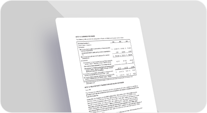 NOTE 13. EARNINGS PER SHARE The following table sets forth the computation of basic and diluted earnings per common share Year ended December 31, 2021 2020 2019 (common shares in thousands) (umerator (et income (loss) available (attributable) to RenaissanceRe common shareholders $ (73,421) $ 731,482 $ 712,042 Amount allocated to participating common shareholders (1) (727) (8,968) (8,545) (et income (loss) allocated to RenaissanceRe common shareholders $ (74,148) $ 722,514 $ 703,497 Denominator Denominator for basic income (loss) per RenaissanceRe common share - weighted average common shares 47,171 47,103 43,119 Per common share equivalents of non-vested shares S 75 56 Denominator for diluted income (loss) per RenaissanceRe common share - adjusted weighted average common shares and assumed conversions 47,171 47,178 43,175 (et income (loss) available (attributable) to RenaissanceRe common shareholders per common share R basic $ (1.57) $ 15.34 $ 16.32 (et income (loss) available (attributable) to RenaissanceRe common shareholders per common share R diluted $ (1.57) $ 15.31 $ 16.29 (1) Represents earnings and dividends attributable to holders of unvested shares issued pursuant to the Companys stock compensation plans. NOTE 14. RELATED PARTY TRANSACTIONS AND MAJOR CUSTOMERS Tower Hill The Company has entered into reinsurance and other arrangements with certain subsidiaries and affiliates of Tower "ill and has also entered into reinsurance arrangements with respect to business produced by the Tower "ill Companies. During 2021, the Company recorded $69.8 million ( 2020 - $55.5 million, 2019 - $39.8 million) of gross premiums written assumed from the Tower "ill Companies and its subsidiaries and affiliates. Gross premiums earned totaled $63.0 million ( 2020 - $51.4 million, 2019 - $40.7 million) and expenses incurred were $11.3 million ( 2020 - $7.9 million, 2019 - $6.1 million) for 2021. The Company had a net related outstanding receivable balance of $21.7 million as of December 31, 2021 ( 2020 - receivable of $18.3 million). During 2021, the Company assumed net claims and claim expenses of $28.5 million (2020 - assumed net claims and claim expenses of $13.2 million, 2019 - assumed net claims and claim expenses of $37.7 million) and, as of December 31, 2021, had a net reserve for claims and claim expenses of $68.0 million (2020 - $69.5 million). In addition, the Company received distributions of $15.0 million from the Tower "ill Companies during 2021 (2020 - $9.5 million, 2019 - $13.4 million). Top Layer Re During 2021, the Company received distributions from Top Layer Re of $9.3 million (2020 - $18.0 million, 2019 - $20.0 million), and recorded a management fee of $2.5 million ( 2020 - $2.4 million, 2019 - $2.3 million). The management fee reimburses the Company for services it provides to Top Layer Re. Broker Concentration During 2021, the Company received 78.0% of its gross premiums written (2020 - 79.6%, 2019 - 79.6%) from three brokers. Subsidiaries and affiliates of Aon plc, Marsh McLennan Companies, Inc. and Arthur $. Gallagher accounted for 35.8%, 30.0% and 12.2%, respectively, of gross premiums written in 2021. F-69