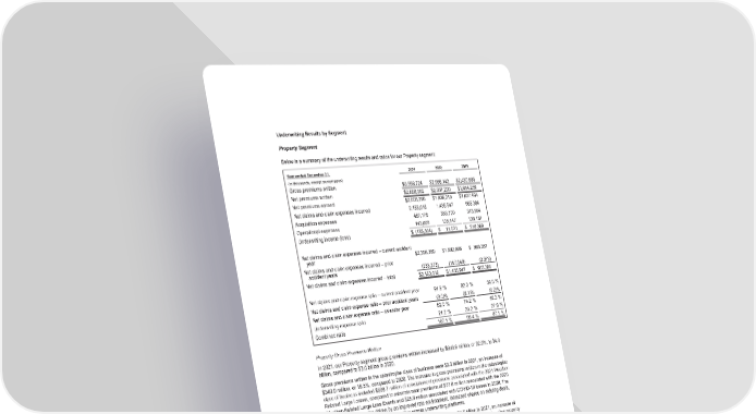 *nderHriting Resu=ts 3J Seg>ent Property Segment Below is a summary of the underwriting results and ratios for our Property segment: .ear ended De4e>3er (in thousands, except percentages) Gross premiums written $ 3,958,724 $ 2,999,142 $ 2,430,985 Net premiums written $ 2,868,002 $ 2,037,200 $ 1,654,259 Net premiums earned $ 2,608,298 $ 1,936,215 $ 1,627,494 Net claims and claim expenses incurred 2,163,016 1,435,947 965,384 Acquisition expenses 487,178 353,700 313,554 Operational expenses 143,608 135,547 138,187 Underwriting income (loss) $ (185,504) $ 11,021 $ 210,369 Net claims and claim expenses incurred – current accident year $ 2,396,389 $ 1,592,996 $ 968,357 Net claims and claim expenses incurred – prior accident years (233,373) (157,049) (2,973) Net claims and claim expenses incurred – total $ 2,163,016 $ 1,435,947 $ 965,384 Net claims and claim expense ratio – current accident year 91.9 % 82.3 % 59.5 % Net claims and claim expense ratio – prior accident years (9.0) % (8.1) % (0.2) % Net claims and claim expense ratio – calendar year 82.9 % 74.2 % 59.3 % Underwriting expense ratio 24.2 % 25.2 % 27.8 % Combined ratio 107.1 % 99.4 % 87.1 % Property Gross Premiums Written In 2021, our Property segment gross premiums written increased by $959.6 million, or 32.0%, to $4.0 billion, compared to $3.0 billion in 2020. Gross premiums written in the catastrophe class of business were $2.2 billion in 2021, an increase of $349.0 million, or 18.5%, compared to 2020. The increase in gross premiums written in the catastrophe class of business included $339.7 million of reinstatement premiums associated with the 2021 Weather- Related Large Losses, compared to reinstatement premiums of $77.0 million associated with the 2020 Weather-Related Large Loss Events and $25.9 million associated with COVID-19 losses in 2020. The growth in 2021 was also driven by an improved rate environment, increased shares on existing deals, participation in new deals and opportunities across underwriting platforms. Gross premiums written in the other property class of business were $1.7 billion in 2021, an increase of $610.6 million, or 54.9%, compared to 2020. The increase in gross premiums written in the other property class of business was primarily driven by rate improvements which contributed to growth in new and existing business written in the current and prior periods across underwriting platforms. This included growth in catastrophe exposed U.S. property excess and surplus lines. In 2020, our Property segment gross premiums written increased by $568.2 million, or 23.4%, to $3.0 billion, compared to $2.4 billion in 2019. Gross premiums written in our catastrophe class of business were $1.9 billion in 2020, an increase of $291.3 million, or 18.3%, compared to 2019. The increase in gross premiums written in our catastrophe class of business in 2020 was primarily driven by expanded participation on existing transactions, certain new transactions, rate improvements and business acquired as a result of the acquisition of TMR. 78