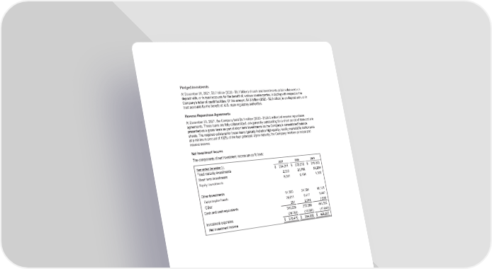 Pledged Investments At December 31, 2021, . billion ( 2020 - .1 billion) of cash and investments at fair value were on deposit with, or in trust accounts for the benefit of, various counterparties, including with respect to the Company’s letter of credit facilities. )f this amount, 1. billion ( 2020 - 2. billion) is on deposit with, or in trust accounts for the benefit of, U.S. state regulatory authorities. Reverse Repurchase Agreements At December 31, 2021, the Company held .1 million ( 2020 - 12. million) of reverse repurchase agreements. These loans are fully collateralized, are generally outstanding for a short period of time and are presented on a gross basis as part of short term investments on the Company’s consolidated balance sheets. The required collateral for these loans typically includes high-quality, readily marketable instruments at a minimum amount of 102 of the loan principal. Upon maturity, the Company receives principal and interest income. Net Investment Income The components of net investment income are as follows Year ended December 31, 2021 2020 2019 Fixed maturity investments 234,11 2,21 31,03 Short term investments 2,333 20, ,24 Equity investments ,01 ,404 4,0 )ther investments Catastrophe bonds 4,0 4,4 4,14 )ther 2,11 ,41 ,44 Cash and cash equivalents 2 2,4 , 340,22 32,3 441,2 Investment expenses (20,0) (1,) (1,4) (et investment income 31,4 34,03 424,20 F-2