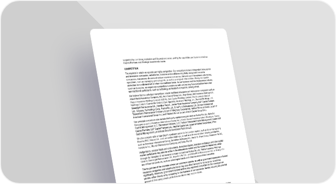 supported by our strong reputation and financial resources, and by the capabilities and track record of our Capital Partners and Strategic Investments teams. COMPETITION The markets in which we operate are highly competitive. Our competitors include independent reinsurance and insurance companies, subsidiaries, divisions and/or affiliates of globally recognized insurance companies, reinsurance divisions of certain insurance companies, domestic and international underwriting operations, such as managing general agents, as well as a range of other entities offering risk transfer protection on a collateralized or other non-traditional basis. As our business and the (re)insurance industry continue to evolve, we expect our competitors to evolve as well, and we may face competition from other non-traditional participants, such as technology or Insurtech companies, among others. We believe that our principal competitors include traditional insurance and reinsurance companies such as Allied World Assurance Company, AG, Arch Capital Group Ltd., Argo Group, Ark Insurance Holdings Ltd., Aspen Insurance Holdings Limited, AXA XL, Axis Capital Holdings Limited, Chubb Limited, Conduit Holdings Limited, Convex Re Limited, Core Specialty Insurance Holdings, Inc., Everest Re Group, Ltd., Greenlight Reinsurance Ltd., Hamilton Re Ltd., James River Insurance Company, LGT Capital Partners Ltd., Odyssey Re Holdings Corp., PartnerRe Ltd., SiriusPoint Reinsurance Ltd., Sompo International, Transatlantic Reinsurance Company (a part of Alleghany Corporation), Validus Reinsurance Ltd. (a part of American International Group Inc.) and Watford Re Ltd. (a part of Arch Capital Group Ltd.). Our principal competitors also include third-party capital managers such as Aeolus Re Ltd., AlphaCat Managers (a part of American International Group Inc.), Credit Suisse Insurance Linked Strategies, Fermat Capital Management, LLC, Elementum Advisors, LLC, Hudson Structured Capital Management, Leadenhall Capital Partners, LGT Capital Partners Ltd., Nephila Capital Ltd. (a part of Markel Corporation), Pillar Capital Management Limited and Securis Investment Partners LLC. We also compete with certain Lloyd’s syndicates active in the London market, such as those managed by Beazley PLC, Hiscox Ltd., and Lancashire Holdings, as well as with several other industry participants, such as American International Group, Berkshire Hathaway Inc., the D. E. Shaw Group, Hannover Re AG, Ironshore Inc., Munich Reinsurance Company and Swiss Re Ltd. Hedge funds, pension funds and endowments, investment banks, insurance exchanges and other capital market participants may also be active in the reinsurance market and the market for related risk, either through the formation of reinsurance companies (such as Aeolus Re Ltd., Fidelis Insurance Holdings Limited, Greenlight Reinsurance Ltd., Hamilton Re Ltd., and SiriusPoint Reinsurance Ltd.) or through the use of financial products, such as catastrophe bonds and other insurance-linked securities. The tax policies of the countries where our customers operate, as well as government sponsored or backed insurance companies and catastrophe funds may also affect demand for reinsurance, sometimes significantly. Moreover, government-backed entities may represent competition for the coverages we provide, either directly or by competing for the business of our customers, thereby reducing the potential amount of third-party private protection our clients may need or desire. RISK MANAGEMENT Underwriting Risk Management Our primary underwriting goal is to construct a portfolio of reinsurance and insurance contracts and other financial risks that maximizes our return on shareholders’ equity, subject to prudent risk constraints, and to generate long-term growth in tangible book value per common share plus the change in accumulated dividends. We assess each new (re)insurance contract on the basis of the expected incremental return relative to the incremental contribution to portfolio risk. We have developed a proprietary pricing and exposure management system, REMS©, which has analytic and modeling capabilities that help us to assess the risk and return of each incremental (re)insurance contract in relation to our overall portfolio of (re)insurance contracts. We believe that REMS© is a robust underwriting and risk management system that has been successfully integrated into our business processes and culture. In conjunction with pricing models that we run outside of REMS©, the REMS© framework encompasses and facilitates risk capture, analysis, correlation, portfolio aggregation and capital 11