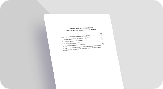 RENAISSANCERE HOLDINGS LTD. AND SUBSIDIARIES INDEX TO SCHEDULES TO CONSOLIDATED FINANCIAL STATEMENTS Page Report of Independent Registered Public Accounting Firm on Schedules . . . . . . . . . . . . . . . . . . . . . . S-2 I . Summary of Investments other than Investments in Related Parties . . . . . . . . . . . . . . . . . . . . . . . S-3 II Condensed Financial Information of Registrant . . . . . . . . . . . . . . . . . . . . . . . . . . . . . . . . . . . . . . . . . S-4 III Supplementary Insurance Information . . . . . . . . . . . . . . . . . . . . . . . . . . . . . . . . . . . . . . . . . . . . . . . . . S-7 IV Supplemental Schedule of Reinsurance Premiums . . . . . . . . . . . . . . . . . . . . . . . . . . . . . . . . . . . . . S-8 VI Supplementary Insurance Information Concerning Property-Casualty Insurance Operations . . S-8 Schedules other than those listed above are omitted for the reason that they are not applicable. S-1