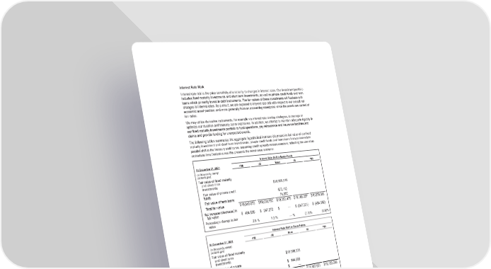 Interest Rate Risk Interest rate risk is the price sensitivity of a security to changes in interest rates. Our investment portfolio includes fixed maturity investments and short term investments, as well as private credit funds and term loans which primarily invest in debt instruments. The fair values of these investments will fluctuate with changes in interest rates. As a result, we are exposed to interest rate risk with respect to our overall net economic asset position, and more generally from an accounting standpoint, since the assets are carried at fair value. We may utilize derivative instruments, for example via interest rate overlay strategies, to manage or optimize our duration and treasury curve exposures. In addition, we attempt to maintain adequate liquidity in our fixed maturity investments portfolio to fund operations, pay reinsurance and insurance liabilities and claims and provide funding for unexpected events. The following tables summarize the aggregate hypothetical increase (decrease) in fair value of our fixed maturity investment and short term investments, private credit funds and term loans from an immediate parallel shift in the treasury yield curve, assuming credit spreads remain constant, reflecting the use of an immediate time horizon since this presents the worst-case scenario: Interest Rate Shift in Basis Points At December 31, 2021 -100 -50 Base 50 100 (in thousands, except percentages) Fair value of fixed maturity and short term investments $ 18,805,516 Fair value of private credit funds 473,112 Fair value of term loans 74,850 Total fair value $ 19,848,073 $ 19,600,750 $ 19,353,478 $ 19,106,257 $ 18,859,086 Net increase (decrease) in fair value $ 494,595 $ 247,272 $ — $ (247,221) $ (494,392) Percentage change in fair value 2.6 % 1.3 % — % (1.3) % (2.6) % Interest Rate Shift in Basis Points At December 31, 2020 -100 -50 Base 50 100 (in thousands, except percentages) Fair value of fixed maturity and short term investments $ 18,500,238 Fair value of private credit funds $ 144,556 Fair value of term loans $ — Total fair value $ 19,168,368 $ 18,904,916 $ 18,644,794 $ 18,387,651 $ 18,132,236 Net increase (decrease) in fair value $ 523,574 $ 260,122 $ — $ (257,143) $ (512,558) Percentage change in fair value 2.8 % 1.4 % — % (1.4) % (2.7) % As noted above, we use derivative instruments, primarily interest rate futures and interest rate swaps, within our portfolio of fixed maturity investments to manage our exposure to interest rate risk, which can include increasing or decreasing our exposure to this risk. At December 31, 2021, we had $2.2 billion of notional long positions and $0.5 billion of notional short positions of primarily Eurodollar, and U.S. Treasury futures contracts (2020 - $2.0 billion and $1.0 billion, respectively). At December 31, 2021, we had $Nil of notional interest rate swap positions paying a fixed rate and $Nil receiving a fixed rate denominated in U.S. dollar 109