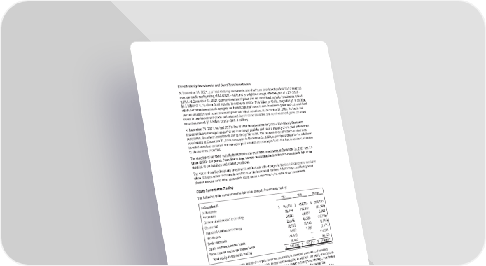 Fixed Maturity Investments and Short Term Investments At December 31, 2021, our fixed maturity investments and short term investment portfolio had a weighted average credit quality rating of AA (2020 – AAA) and a weighted average effective yield of 1.2% (2020 – 0.9%). At December 31, 2021, our non-investment grade and not rated fixed maturity investments totaled $1.3 billion or 9.7% of our fixed maturity investments (2020 - $1.4 billion or 10.0%, respectively). In addition, within our other investments category we have funds that invest in non-investment grade and not rated fixed income securities and non-investment grade cat-linked securities. At December 31, 2021, the funds that invest in non-investment grade and not rated fixed income securities and non-investment grade cat-linked securities totaled $1.8 billion ( 2020 – $911.4 million). At December 31, 2021, we had $5.3 billion o f short term investments (2020 – $5.0 billion). Short term investments are managed as part of our investment portfolio and have a maturity of one year or less when purchased. Short term investments are carried at fair value. The increase in our allocation to short term investments at December 31, 2021, compared to December 31, 2020, is principally driven by the additional invested assets in certain of our managed joint ventures and managed funds that limit investment allocation to shorter term securities. The duration of our fixed maturity investments and short term investments at December 31, 2021 was 3.0 years (2020 - 2.9 years). From time to time, we may reevaluate the duration of our portfolio in light of the duration of our liabilities and market conditions. The value of our fixed maturity investments will fluctuate with changes in the interest rate environment and when changes occur in economic conditions or the investment markets. Additionally, our differing asset classes expose us to other risks which could cause a reduction in the value of our investments. Equity Investments Trading The following table summarizes the fair value of equity investments trading: At December 31, 2021 2020 Change (in thousands) Financials $ 146,615 $ 452,765 $ (306,150) Communications and technology 82,444 119,592 (37,148) Consumer 51,083 44,477 6,606 Industrial, utilities and energy 26,645 43,380 (16,735) Healthcare 28,796 35,140 (6,344) Basic materials 5,092 7,263 (2,171) Equity exchange traded funds 114,919 — 114,919 Fixed income exchange traded funds 90,422 — 90,422 Total equity investments trading $ 546,016 $ 702,617 $ (156,601) A portion of our investments included in equity investments trading is managed pursuant to diversified public equity securities mandates with third-party investment managers. In addition, our equity investments trading include more concentrated public equity positions that we invest in through our strategic investment portfolio. These investments are subject to a variety of risks including: company performance, the availability of strategic investment opportunities, and macro-economic, industry, and systemic risks of the equity markets overall. Consequently, the carrying value of our investment portfolio will vary over time as the value or size of our portfolio of strategic investments in marketable equity securities fluctuates. The change in fair value of equity investments trading from 2020 to 2021 was impacted by the partial sale of our strategic investment in Trupanion. It is possible we will increase our equity allocation in the future, and it could, from time to time, have a material effect on our financial results. 101