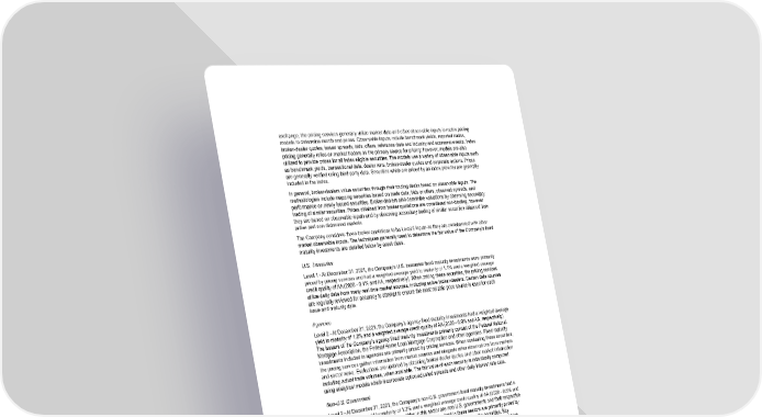 exchange, the pricing services generally utilize market data and other observable inputs in matrix pricing models to determine month end prices. Observable inputs include benchmark yields, reported trades, broker-dealer quotes, issuer spreads, bids, offers, reference data and industry and economic events. Index pricing generally relies on market traders as the primary source for pricing; however, models are also utilized to provide prices for all index eligible securities. The models use a variety of observable inputs such as benchmark yields, transactional data, dealer runs, broker-dealer quotes and corporate actions. Prices are generally verified using third-party data. Securities which are priced by an index provider are generally included in the index. In general, broker-dealers value securities through their trading desks based on observable inputs. The methodologies include mapping securities based on trade data, bids or offers, observed spreads, and performance on newly issued securities. roker-dealers also determine valuations by observing secondary trading of similar securities. Prices obtained from broker quotations are considered non-binding, however they are based on observable inputs and by observing secondary trading of similar securities obtained from active and non-distressed markets. The Company considers these broker quotations to be Level 2 inputs as they are corroborated with other market observable inputs. The techniques generally used to determine the fair value of the Company’s fixed maturity investments are detailed below by asset class. U.S. Treasuries Level 1 - At December 1, 2021, the Company’s /.S. treasuries fixed maturity investments were primarily priced by pricing services and had a weighted average yield to maturity of 1.1 and a weighted average credit quality of AA (2020 - 0. and AA , respectively). When pricing these securities, the pricing services utilize daily data from many real time market sources, including active broker-dealers. Certain data sources are regularly reviewed for accuracy to attempt to ensure the most reliable price source is used for each issue and maturity date. Agencies Level 2 - At December 1, 2021, the Company’s agency fixed maturity investments had a weighted average yield to maturity of 1.2 and a weighted average credit quality of AA (2020 - 0.9 and AA , respectively). The issuers of the Company’s agency fixed maturity investments primarily consist of the Federal National 'ortgage Association, the Federal Home Loan 'ortgage Corporation and other agencies. Fixed maturity investments included in agencies are primarily priced by pricing services. When evaluating these securities, the pricing services gather information from market sources and integrate other observations from markets and sector news. Evaluations are updated by obtaining broker-dealer quotes and other market information including actual trade volumes, when available. The fair value of each security is individually computed using analytical models which incorporate option adjusted spreads and other daily interest rate data. Non-U.S. Government Level 2 - At December 1, 2021, the Company’s non-/.S. government fixed maturity investments had a weighted average yield to maturity of 1.2 and a weighted average credit quality of AA (2020 - 0. and AAA , respectively). The issuers of securities in this sector are non-/.S. governments and their respective agencies as well as supranational organizations. Securities held in these sectors are primarily priced by pricing services that employ proprietary discounted cash flow models to value the securities. Key quantitative inputs for these models are daily observed benchmark curves for treasury, swap and high issuance credits. The pricing services then apply a credit spread for each security which is developed by in- depth and real time market analysis. For securities in which trade volume is low, the pricing services utilize data from more frequently traded securities with similar attributes. These models may also be supplemented by daily market and credit research for international markets. Non-U.S. Government-backed Corporate Level 2 - At December 1, 2021, the Company’s non-/.S. government-backed corporate fixed maturity investments had a weighted average yield to maturity of 1. and a weighted average credit quality of AA (2020 - 1.0 and AA, respectively). Non-/.S. government-backed corporate fixed maturity investments are primarily priced by pricing services that employ proprietary discounted cash flow models to value the F-2