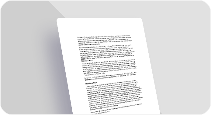 Certificate of Designation for the applicable series of preference shares, unless and until further action is taken by the Board of Directors. The dividend payment dates for the preference shares will be the first day of March, June, September and December of each year (or if this date is not a business day, on the business day immediately following this date). The record dates for the preference share dividends are one day prior to the dividend payment dates. The amount of the dividend on the 5.750% Series F Preference Shares is an amount per share equal to 5.750% of the liquidation preference per annum (the equivalent to $1,437.50 per 5.750% Series F Preference Share per annum, or $359.375 per 5.750% Series F Preference Share per quarter, or $1.4375 per Depositary Share per annum, or $0.359375 per Depositary Share per quarter). The amount of the dividend on the 4.20% Series G Preference Shares is an amount per share equal to 4.20% of the liquidation preference per annum (the equivalent to $1,050 per 4.20% Series G Preference Share per annum, or $262.50 per 4.20% Series G Preference Share per quarter, or $1.05 per Depositary Share per annum, or $0.2625 per quarter). The amount of the dividend on the Series C 6.08% Preference Shares was an amount per share equal to 6.08% of the liquidation preference per annum (the equivalent to $1.52 per share per annum, or $0.38 per share per quarter), and was paid prior to the redemption in full of the Series C 6.08% shares on March 26, 2020. The amount of the dividend on the Series E 5.375% Preference Shares was an amount per share equal to 5.375% of the liquidation preference per annum (the equivalent to $1.34375 per share per annum, or $0.3359375 per share per quarter), and was paid prior to the redemption in full of the Series E 5.375% Preference Shares on August 11, 2021. During 2021, the Company paid $33.3 million in preference share dividends (2020 - $30.9 million, 2019 - $36.8 million) and $67.8 million in common share dividends (2020 - $68.5 million, 2019 - $59.4 million). Share Repurchases The Company’s share repurchase program may be effected from time to time, depending on market conditions and other factors, through open market purchases and privately negotiated transactions. On November 11, 2021, RenaissanceRe’s Board of Directors approved a renewal of its authorized share repurchase program for an aggregate amount of up to $500.0 million. Unless terminated earlier by RenaissanceRe’s Board of Directors, the program will expire when the Company has repurchased the full value of the common shares authorized. During 2021, pursuant to the publicly announced share repurchase program, the Company repurchased 6,578,133 common shares at an aggregate cost of $1.0 billion and an average price of $156.78 per common share. At December 31, 2021, $306.6 million remained available for repurchase under the share repurchase program. In the future, the Company may authorize additional purchase activities under the currently authorized share repurchase program, increase the amount authorized under the share repurchase program, or adopt additional trading plans.The Company’s decision to repurchase common shares will depend on, among other matters, the market price of the common shares and the capital requirements of the Company. Refer to “Note 22. Subsequent Events” for additional information related to common share repurchases subsequent to December 31, 2021. F-68